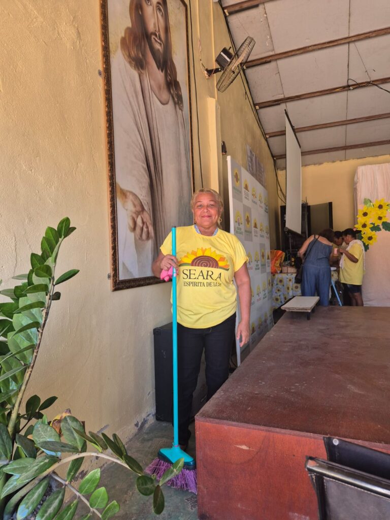 As amigas Kátia Valéria e Marise de Oliveira são também voluntárias assíduas, sempre dispostas a ajudar. Marise ressalta a importância de manter o local limpo: “Todo mundo ajudando para manter limpo, pois aqui eu considero a minha segunda casa”, expressa, revelando o profundo elo afetivo com a Seara de Luz.