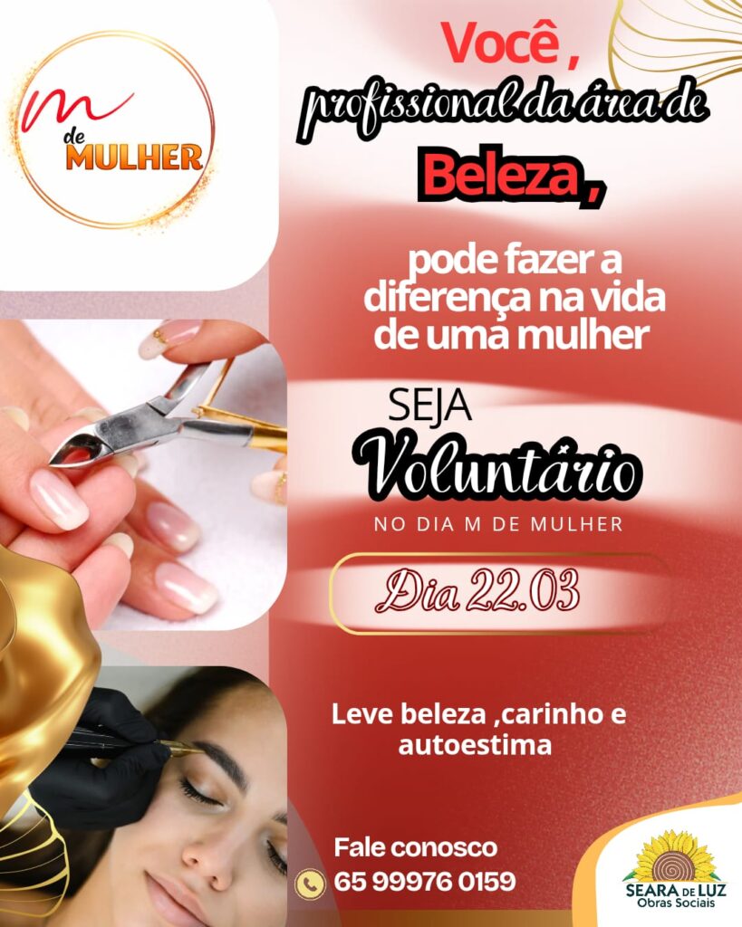 Dia M de Mulher: Instituição convida voluntários da beleza para ação especial em Cuiabá