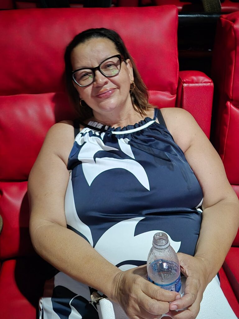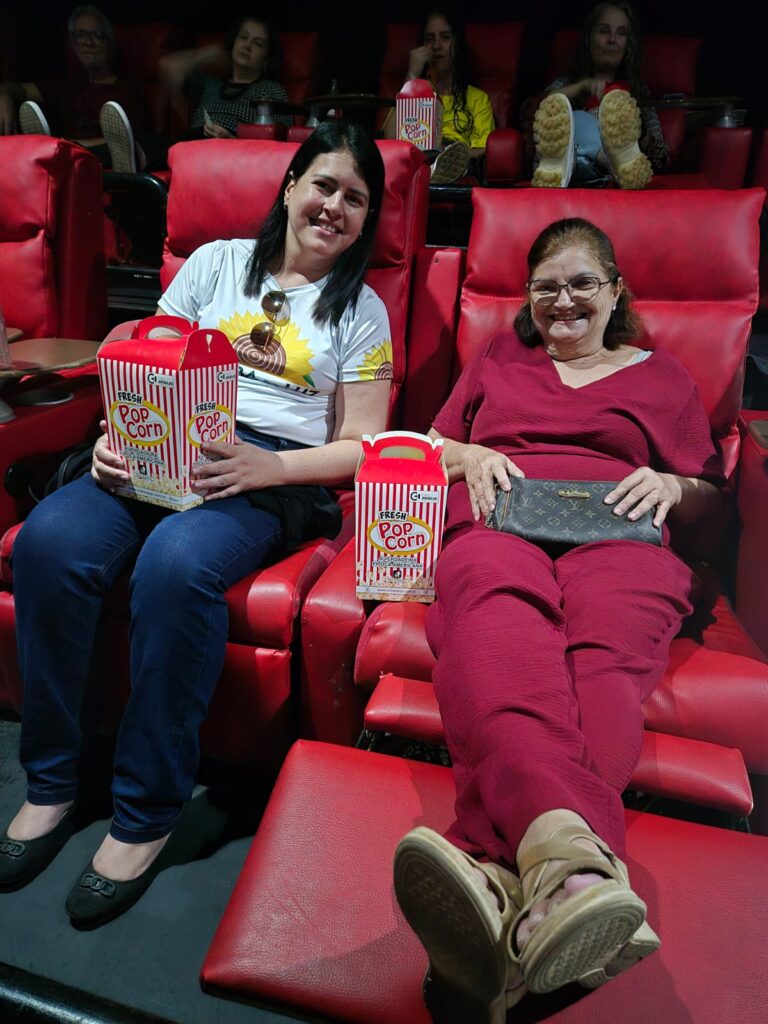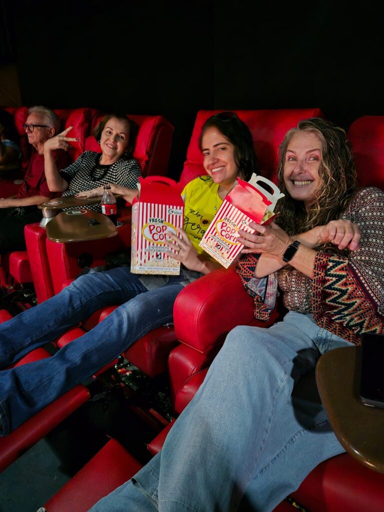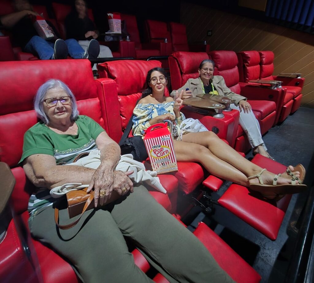 Ronize, com sua mãe Regina e a filha Carol, na Sessão Pipoca