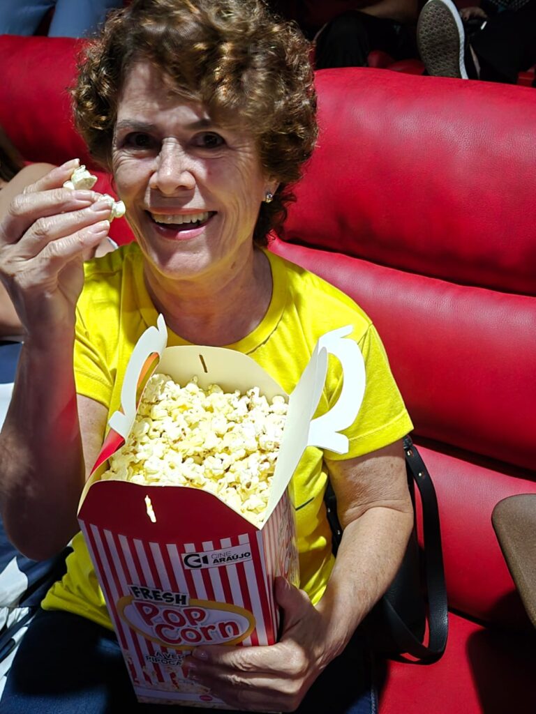 Pipoca e estudo na tela do cinema
