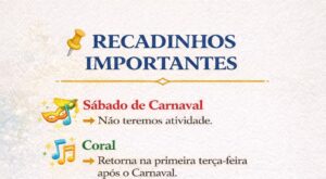 Instituição informa suspensão de atividades no Carnaval, retorno do Coral e abertura de novas vagas para a sede do Bairro Liberdade.